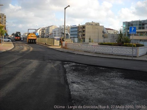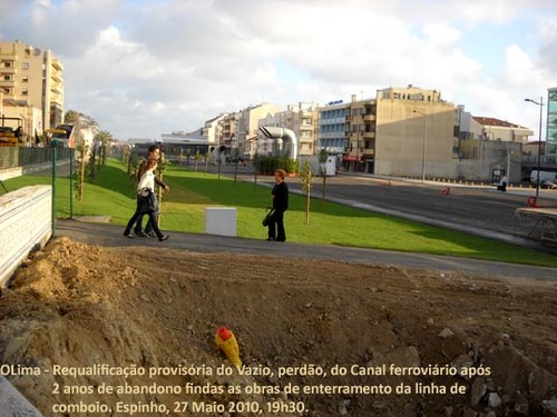 Tal como outras ruas foram alcatroadas, sem aviso, no Verão de 2009, nas vésperas das eleições autárquicas, agora, subitamente, o Largo da Graciosa, a Rua 8 (também conhecida por Rua Dr Manuel Gomes de Almeida) e a Rua 62 estão a ser alcatroadas. Nas vésperas das eleições, a autarquia do socialista José Mota, no poder em Espinho desde 1993, mereceu duros protestos pelo facto de ter feito avançar uma obra com alegados objectivos eleiçoeiros. Agora não há eleições autárquicas à vista, mas há Verão e há muito futebol. Por isso, houve que melhorar as acessibilidades para atrair as massas a uma alameda (sobre o Vazio, perdão, sobre o canal ferroviário que está a ser requalificado) que os novos responsáveis autárquicos sociais-demacratas querem que fique prenhe de excitação com os golos dos Incríveis da Vuvuzela vistos e aplaudidos frente a um ecran gigante. O substancial aumento da superfície impermeabilizada parece ter passado despercebido aos mentores e executores da obra, que não reviram nem ampliaram a rede dos pluviais na zona, o que faz temer o pior quando chover a sério.