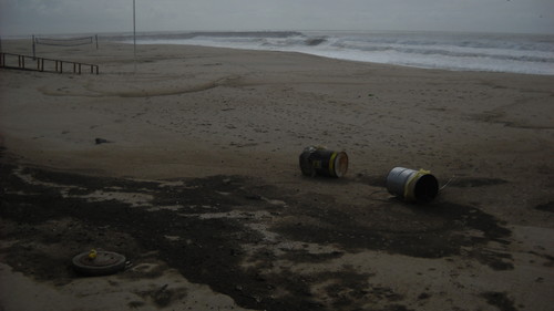 Foto: OLima, Domingo, 10Out2010, 15h. Finda a chamada época balnear, as marés vivas costumam vir varrer e limpar o que as pessoas deixaram ou se esqueceram de levar. Na sua fúria indomável, quase sempre espalham o mal pelas aldeias e distribuem o lixo abandonado ou esquecido. Este ano não fugiram à regra. Há dias, era este o aspecto da praia logo a seguir à das Sereias. Parece que os que vivem, trabalham e pagam impostos em Espinho só têm direito a praias limpas durante 4 meses, quando as massas de fora vêm para cá tirar o retrato. Entretanto, a barraca abandonada na praia das Sereias foi, finalmente, retirada, o que nos apraz registar.
